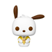 בובת Funko Pop! #93 – Pochacco מציגה את פוצ’אקו, הגור הלבן עם האוזניים השחורות מסדרת Hello Kitty & Friends של סנריו, כשהוא מחזיק קינוח מתוק.
