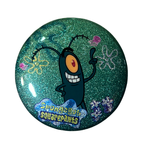 🟢 סיכת פלנקטון מנצנצת בקוטר 58 מ”מ – Plankton Glitter Badge